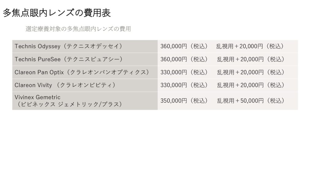 多焦点眼内レンズ手術の場合はクレジットカードも使用できます。